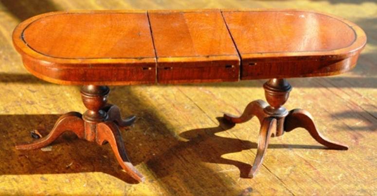 Even in unpainted miniatures, the secondary wood in areas not normally seen may be a cheaper soft wood showing patina, while the visible areas may be made of more expensive hard woods such as mahogany, maple or oak (below). .