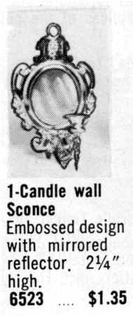 above Federal Smallwares catalogue, undated, 1970s, showing the metal wall scounce on the left; the oval "mirror" is an obvious imitation, as is suggested in the description from another Federal Smallwares undated catalogue, in which it sold for $1.35 on the right