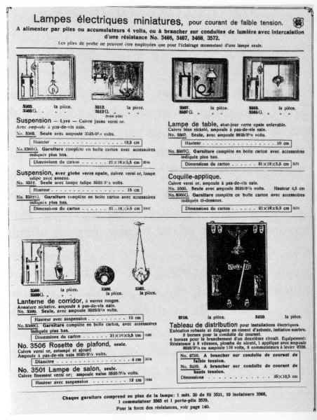 below & right dollhouse electric lighting fixtures in a Märklin, Germany, catalogue of 1909 but likely manufactured by Erhard & Söhne (see Swantje Köhler's 2007 book on the latter company, pp. 5-6)