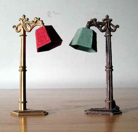 Street lights, made for the appropriate scale of train sets, can work with dollhouses, 1930s, '40s & '50s